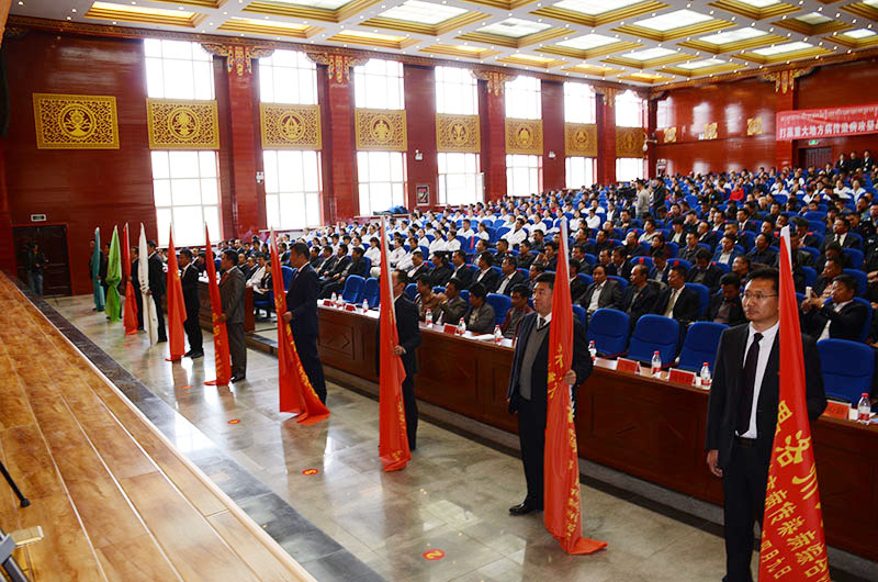4月9日,果洛州以包虫病为主的重大地方病传染病综合防治四年攻坚行动动员部署大会在大武隆重召开。会议举行了庄严隆重的授旗仪式,吹响果洛州以包虫病为主的重大地方病传染病综合防治四年攻坚之战集结号。