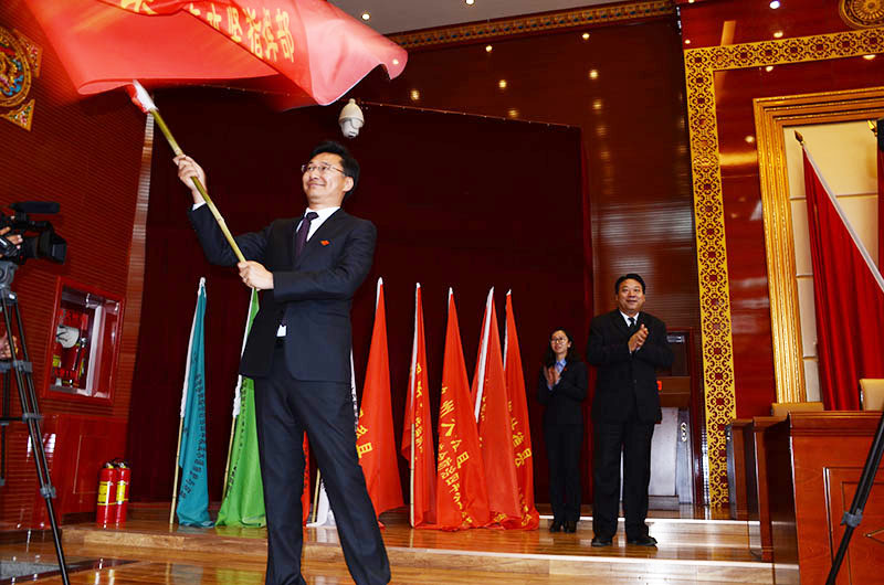 仪式上,州委副书记、州长白加扎西代表果洛州以包虫病为主的地方病传染病四年攻坚领导小组分别向六县授予“以包虫病为主的重大地方病传染病综合防治四年攻坚指挥部”旗帜,向州包虫病人群筛查和治疗管理组、宣传教育组、犬只驱虫和动物免疫管理组、水源地建设管理组分别授予“果洛州以包虫病为主的重大地方病传染病综合防治四年攻坚普查队”、“果洛州以包虫病为主的重大地方病传染病综合防治四年攻坚宣传与健康教育队”、“果洛州以包虫病为主的重大地方病传染病综合防治四年攻坚动物间包虫病综合防治队”、“果洛州以包虫病为主的重大地方病传染病综合防治四年攻坚水源保护与环境治理队”旗帜。各接旗地区、部门郑重承诺,将坚定不移地贯彻落实以包虫病为主的地方病、传染病四年攻坚战略,忠实履行州委州政府和全州人民赋予的神圣使命,为建设健康果洛、增进民生福祉作出积极努力!