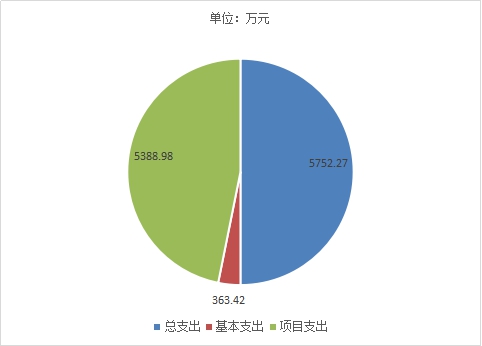 本年支出合计5752.27万元,其中:基本支出363.29万元,占总支出的6.32%;项目支出5388.98万元,占总支出的93.68%。(可列饼状图)