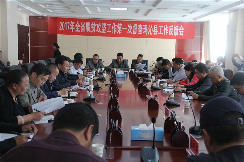 展以来,工作是扎实的,举措是务实的,取得的成绩是有目共睹的,虽然还存在部分突出问题,但玛沁县委县政府高度重视,反应迅速、自查深刻,脱贫攻坚问题已基本得到整改。会议要求,一是要进一步提高思想认识。各级领导干部一定要提高思想认识,把握方向,把脱贫攻坚工作作为全县重大的政治任务和最大的民生工程来抓,要举全县之力、集全民之智,全力推进玛沁脱贫攻坚工作;二是要进一步加大突出问题整改力度,虽然大部分突出问题已经得到整改,但还存在整改措施不具体、整改不全面的问题,要抓紧时间,采取切实有效的措施,制定详实的方案,落实责任整改,限期进行整改,并将整改结果于5月30日前上报省扶贫开发领导小组办公室;三是要进一步加强基础设施和公共服务设施配套建设,各行业部门要严格按照脱贫攻坚规划,对标检查,切实贯彻落实省委省政府各项方针政策,加强基础设施和公共服务设施的配套建设,多方争取项目资金,努力补齐短板;四是要进一步加大督促检查力度。各级党委政府、各扶贫开发领导小组成员单位要全方位、多角度加大督促检查力度,同时要加强对乡镇干部、驻村第一书记、驻村工作队的监督管理,压实工作责任,夯实工作基础;五是进一步加大扶贫政策宣传力度。各乡镇、驻村第一书记、驻村工作队要积极深入学习党的各项扶贫政策,加大政策宣传力度,尤其是对贫困户一对一的宣传,做到家喻户晓、人人皆知,使广大贫困户能够积极主动参与到扶贫工作中来,增加内生动力,增强脱贫信心,确保精准扶贫工作顺利推进。