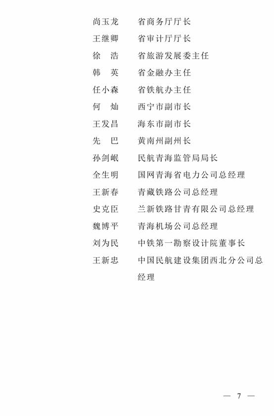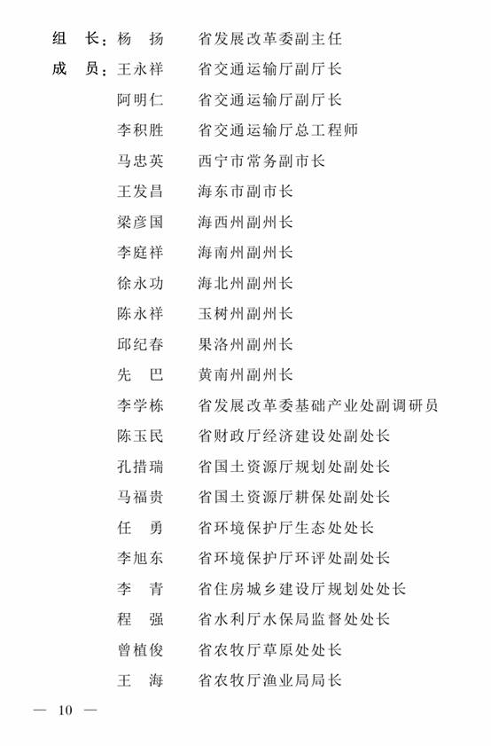 由省委常委、常务副省长王予波任指挥长,副省长韩建华任第一副指挥长,省发展改革委主要负责同志任常务副指挥长,西宁市、海东市、黄南州主要负责同志及省政府分管副秘书长、省发展改革委分管副主任任副指挥长,省监察厅、省财政厅、省国土资源厅、省环境保护厅、省住房城乡建设厅、省交通运输厅、省水利厅、省林业厅、省商务厅、省审计厅、省旅游发展委、省金融办、省铁航办主要负责同志,西宁市、海东市、黄南州分管负责同志,民航青海监管局、国网青海省电力公司、青藏铁路公司、青海机场公司、兰新铁路甘青有限公司、中铁第一勘察设计院、中国民航建设集团西北分公司等部门、单位主要负责同志为成员。(名单详见附件1)指挥部下设综合协调组(融资工作组)、西成铁路组、西宁机场三期组、曹家堡综合交通枢纽组、道路交通组。(名单详见附件2)